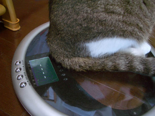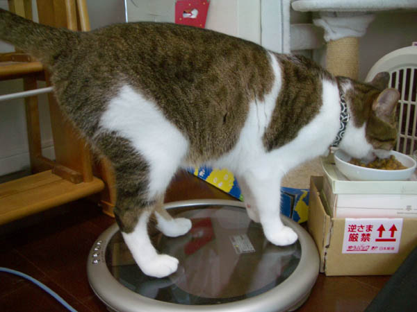 ぽっけ♂がバッチリ体重計に乗っています。
