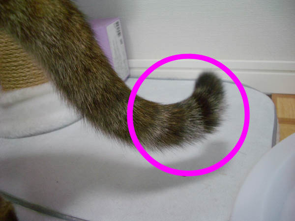 しっぽの先、ちょうど○部分が左右に揺れています。