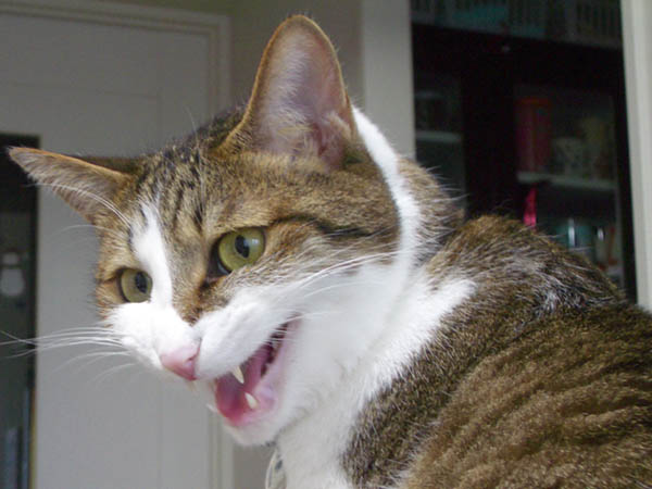 しっぽが下がり、完全に逃げ腰です(笑)。