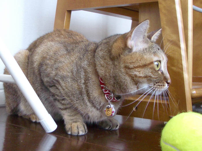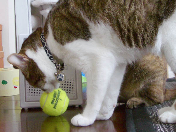 1つ前の記事でテニスボールと「未知との遭遇」をしたぽっけ♂。