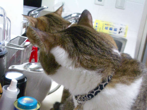 やかんの熱気を感じるのか、一定以上は絶対に近づきません。