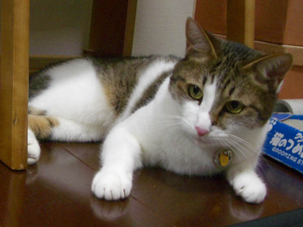 食事と片付けが済んだ後は、ごほうびのカリカリをあげました。