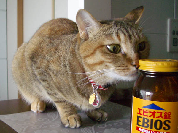 さて、そんなエビオス。猫にあの【ビール酵母】の匂いはどうなんだろう……。