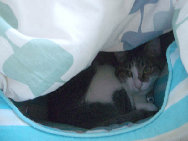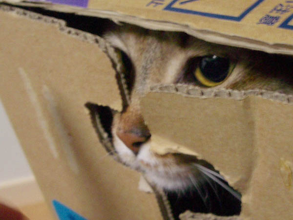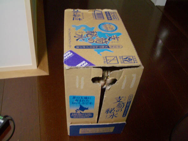 すぐ左にあるダンボール+猫ベッド+羽毛布団の