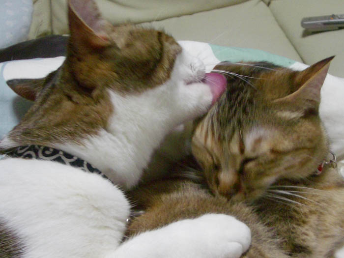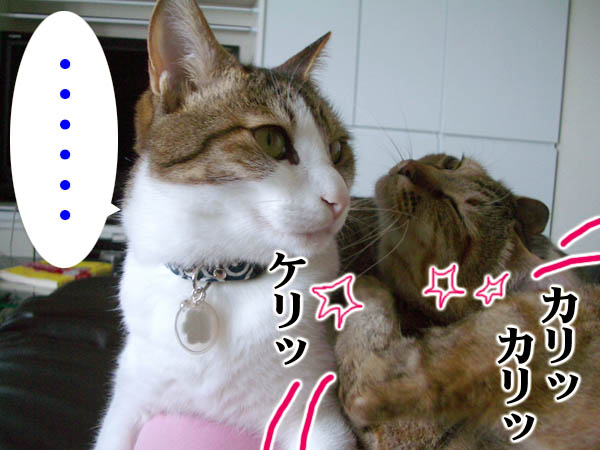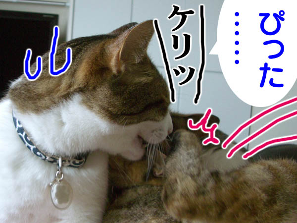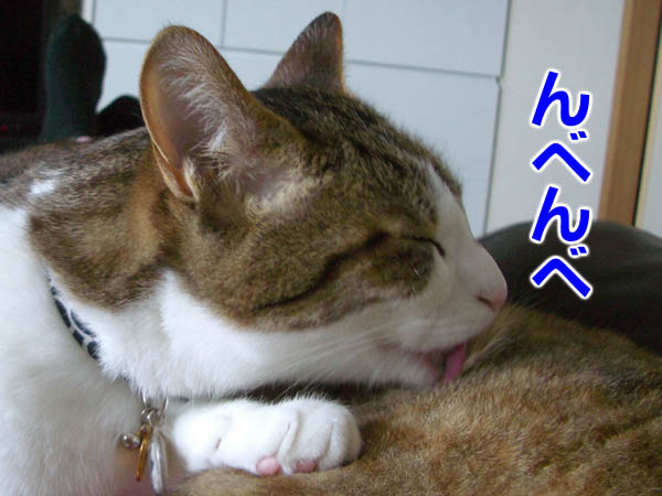を引いて、お手入れを再開してしまいました。邪魔をされたと思ったのか、