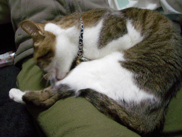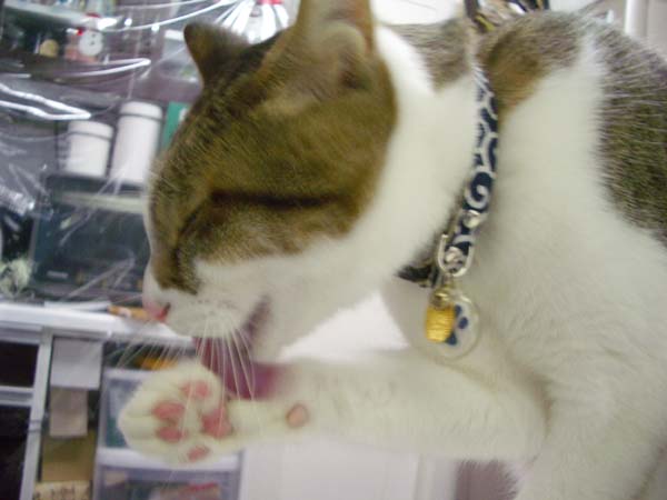 をぐいーんと開いて、お手入れ中のぴっち♀。動きが早いので、なかなかピントが合わず、