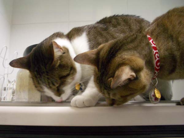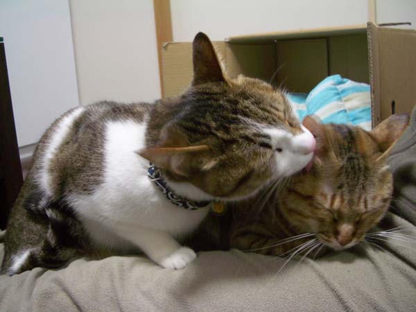 必死で舐めるぽっけ♂を見てやってきたぴっち♀。