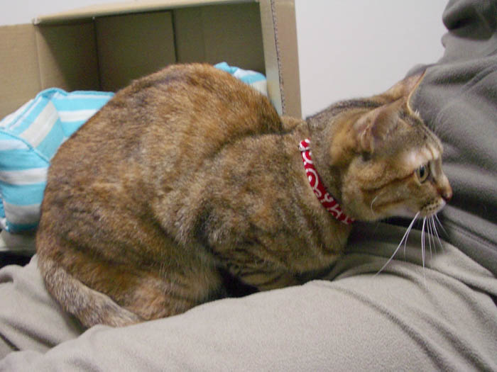 残念ながらたどり着けず、膝の上に落ち着きました。