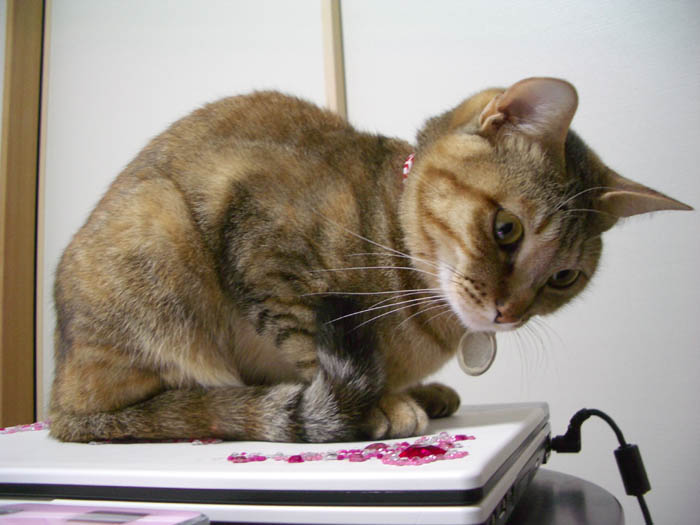 が嫌がるのをわかっていて、ぴっち♀がノートパソコンの上から退いてくれません。