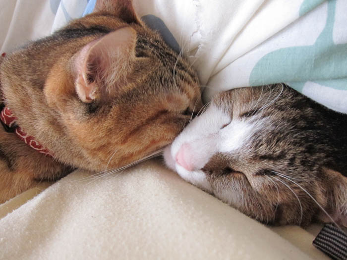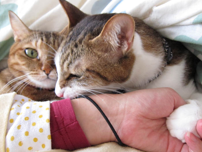2012年 11/23(金) 1560日目のぴっち♀とぽっけ♂ ~猫プロレス~猫プロレスに励む2匹のクロスカウンター。お昼寝に励むぽっけ♂と起床時間の長いぴっち♀。