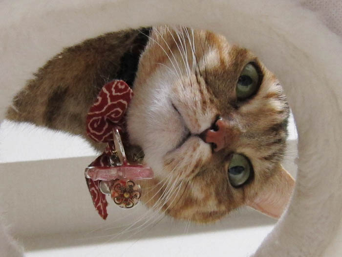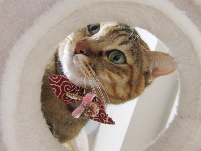 ぴっち♀が猫タワーへ駆け上がると、
