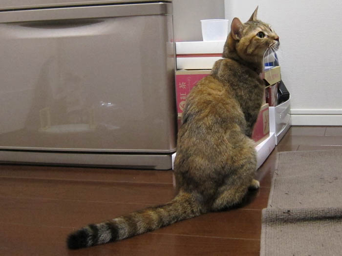 ぽっけ♂はゴハン置き場である廊下へのドア前へと