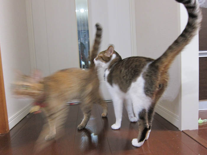 2009年 9/6(日) 386日目のぴっち♀とぽっけ♂ ~お昼寝⇒プロレスの過程~お昼寝の後は大抵プロレスへと発展する2匹。その過程には、ほぼ決まったパターンがありました。