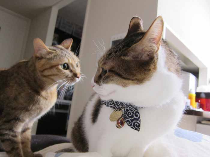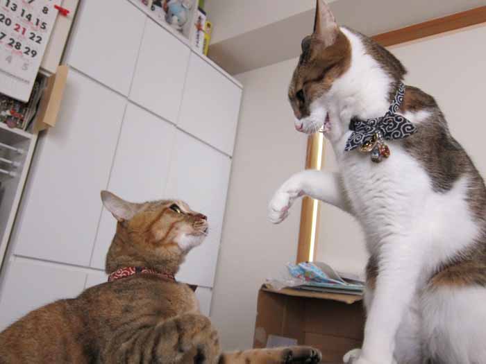 2011年 4/2(土) 959日目のぴっち♀とぽっけ♂ ~お腹全開~ぴっち♀のお腹を子猫時代と比較。毛づくろいをするものの、他の面でぴっち♀に怒られるぽっけ♂。
