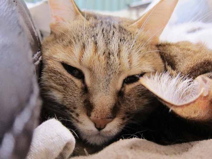 しっぽがお邪魔ですよ……。