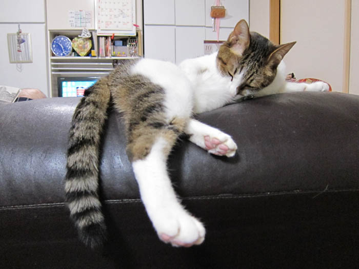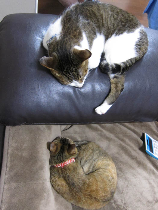 2011年 6/30(木) 1048日目のぴっち♀とぽっけ♂ ~口をプチオープン~ぽっけ♂が口元をちょっぴり開けたままお昼寝中。猫に見えるような見えないような……。