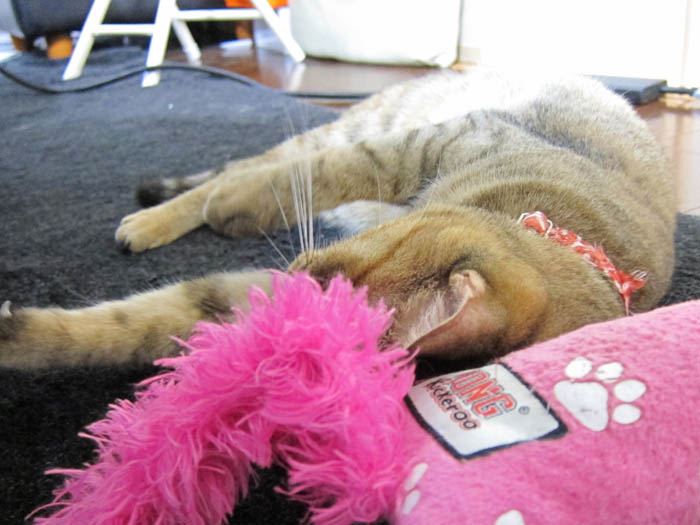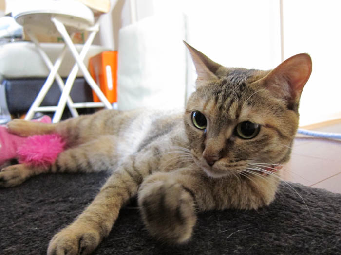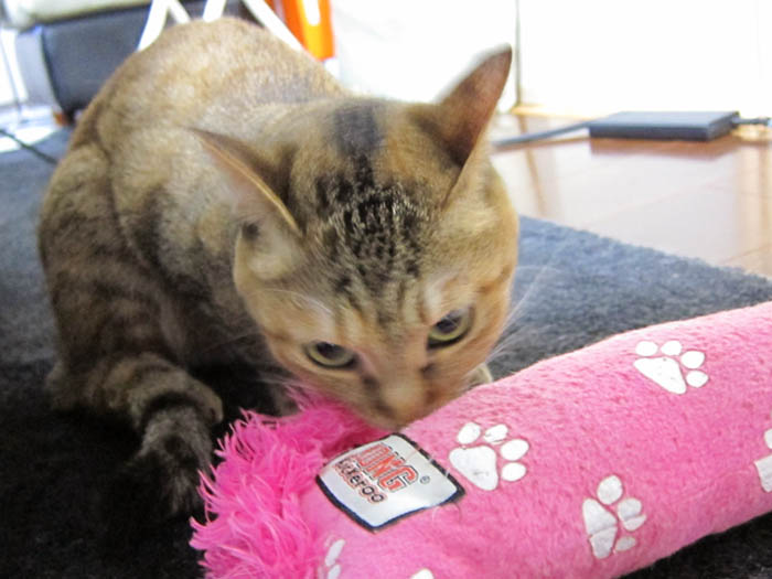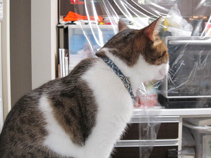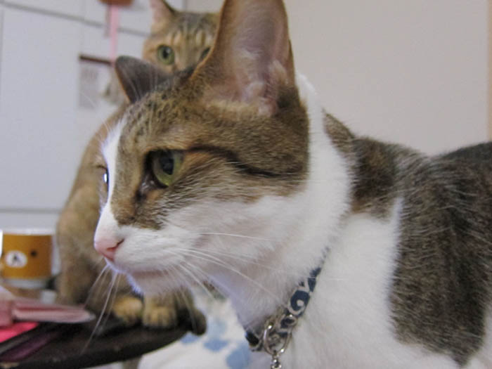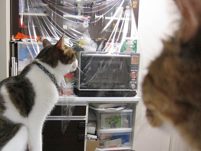 2012年 6/30(木) 1414日目のぴっち♀とぽっけ♂ ~キッチン探検隊~キッチン探検⇒窓際に2匹集合してベランダを観察。一目惚れして買ってきた猫のグッズ。