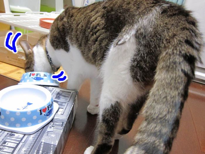 ぽっけ♂のお皿がしっかりと映っています。
