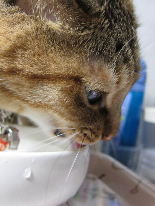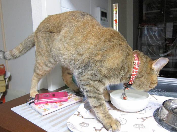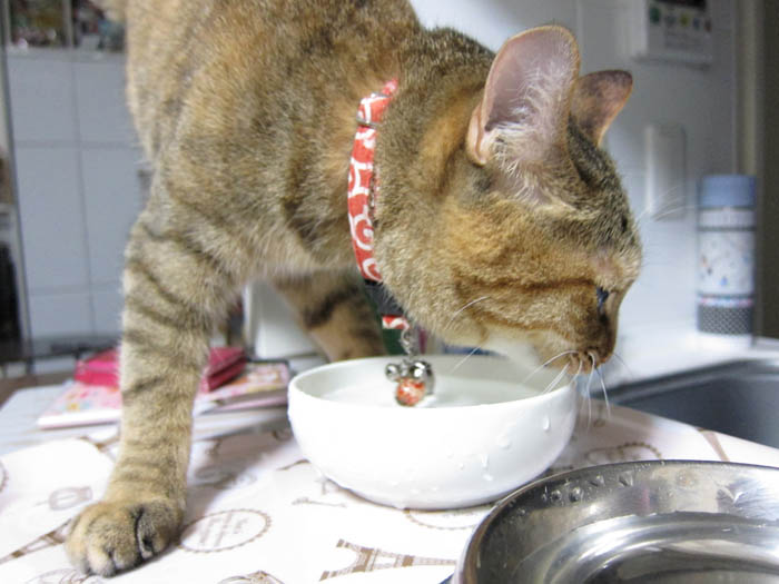 その場でお水を舐め始めました。
