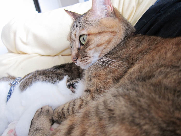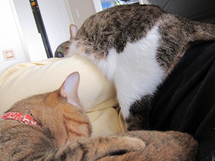 2012年 6/10(日) 1394日目のぴっち♀とぽっけ♂ ~2匹の甘え方~分かりやすい突撃形のぴっち♀と、わかりにくくて意外と面倒(笑)なぽっけ♂と。