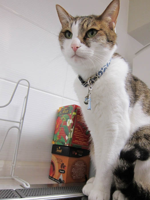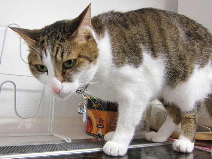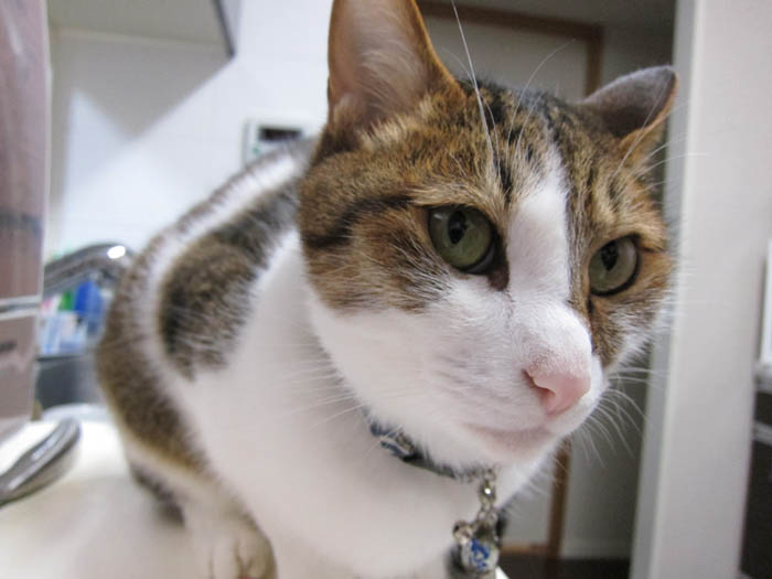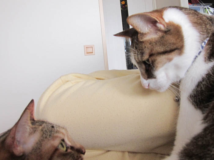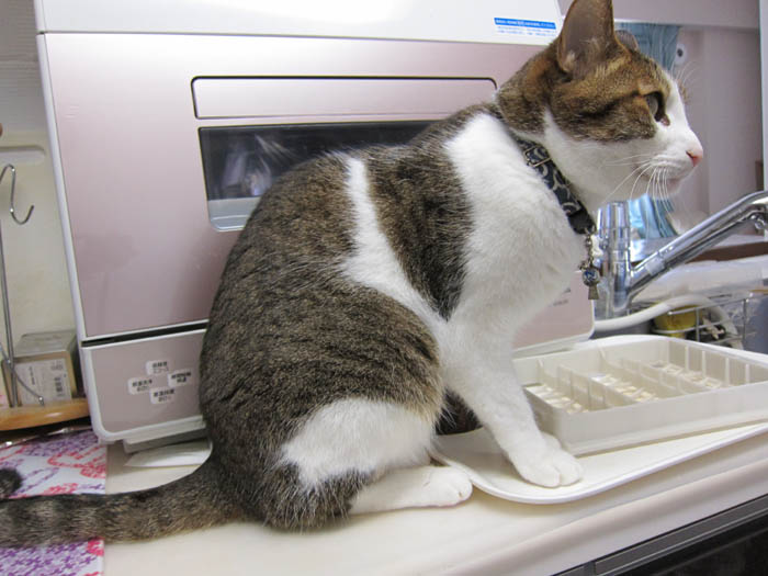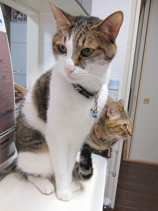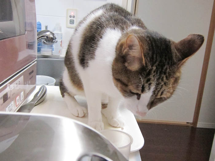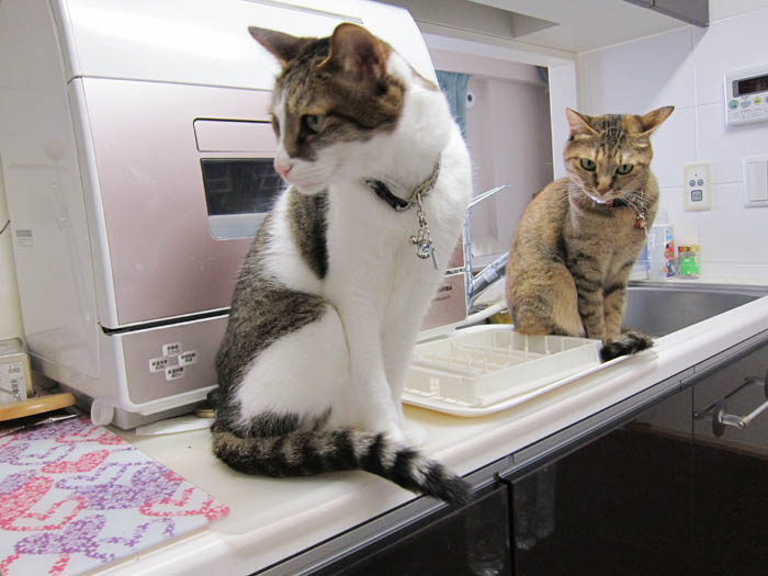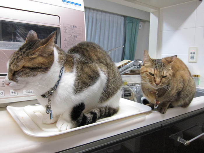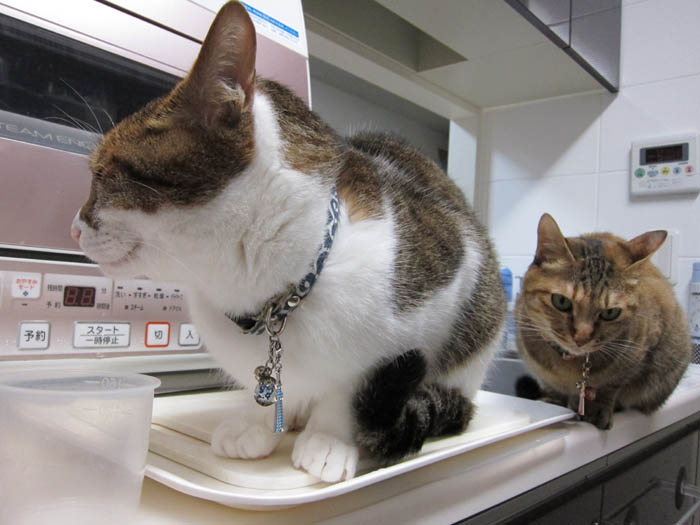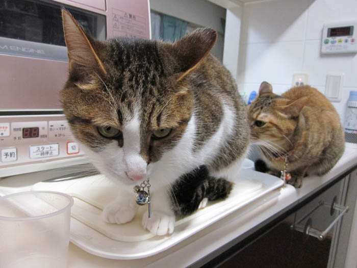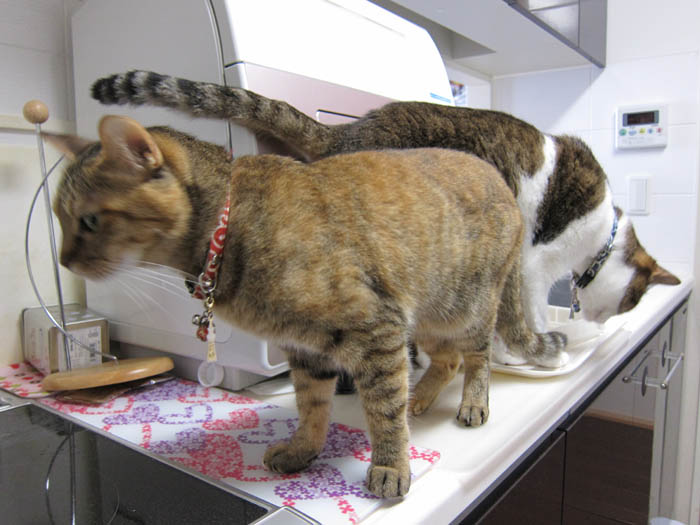 2010年 6/10(木) 663日目のぴっち♀とぽっけ♂ ~猫的3すくみ~キッチン台の上で2匹が狙うのは……。ごはん