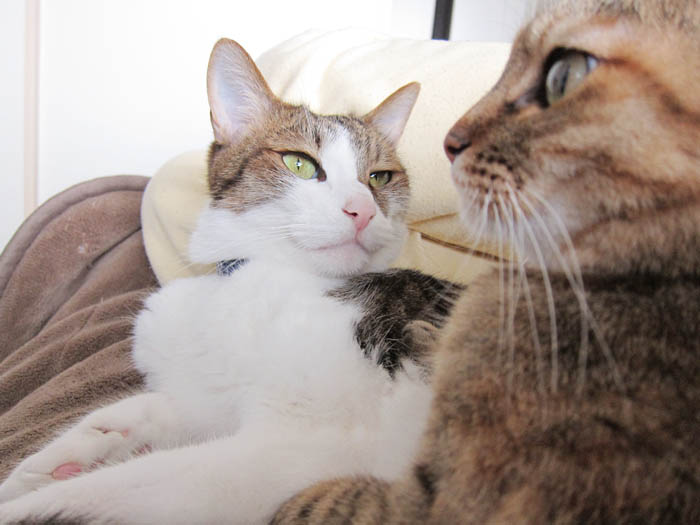 2011年 6/9(木) 1027日目のぴっち♀とぽっけ♂ ~ハンモックで握手~猫ベッドで2匹盛り。ぴっちと握手してみたり。大あくびのぴっち。キッチンでごはんを狙うぽっけ♂。