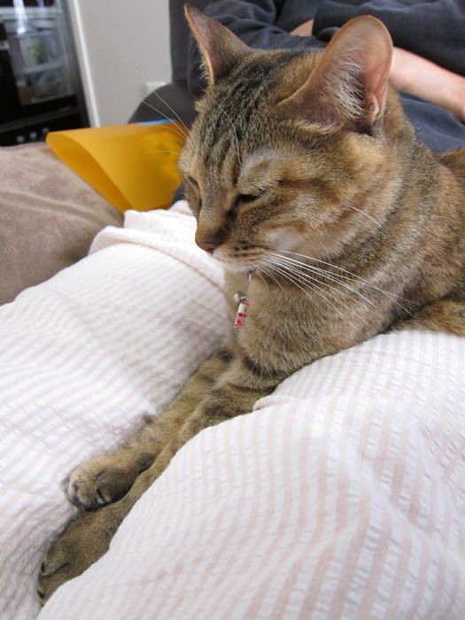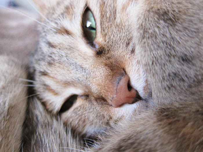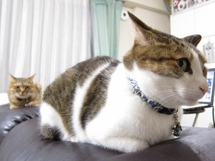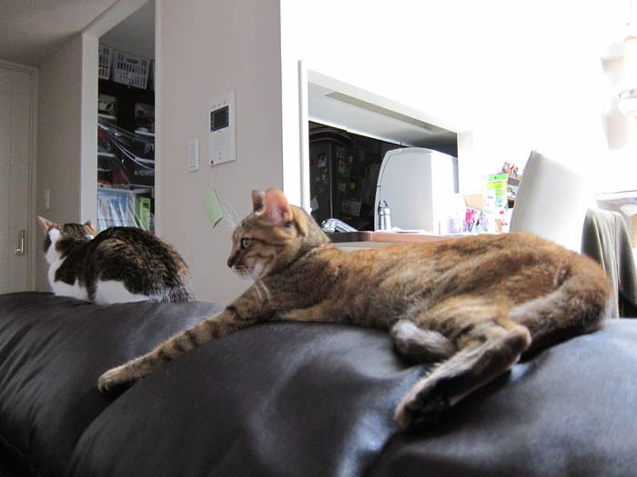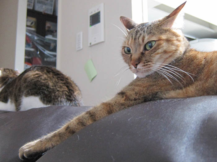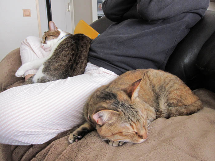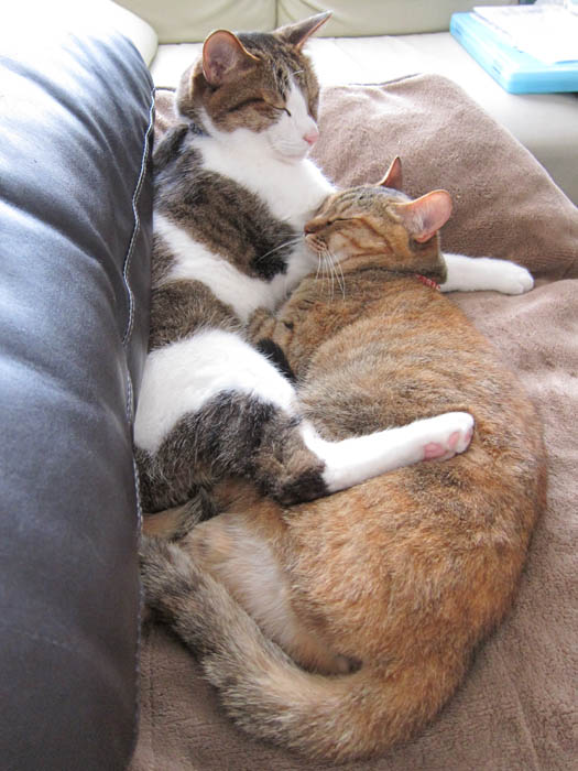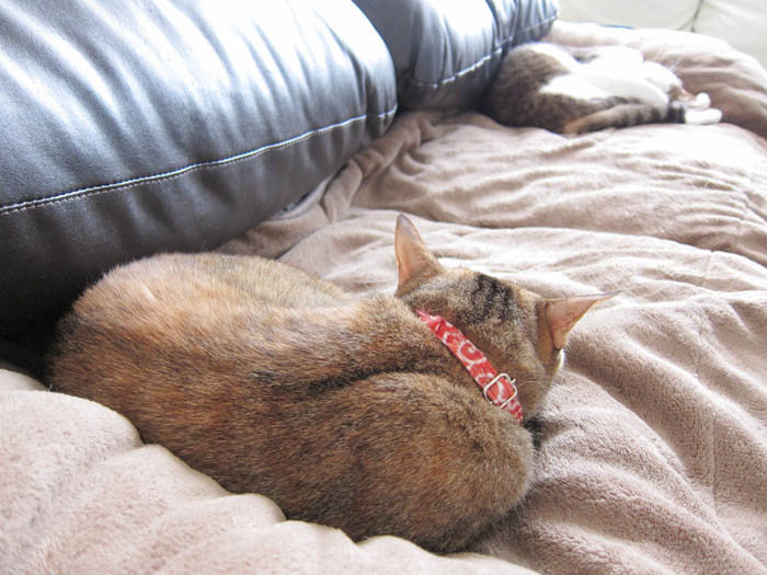 2011年 5/31(火) 1018日目のぴっち♀とぽっけ♂(1) ~伊達巻寝~久しぶりの猫語録に【伊達巻寝】を追加です。ぽっけ♂の鼻先ペロリ写真なども。
