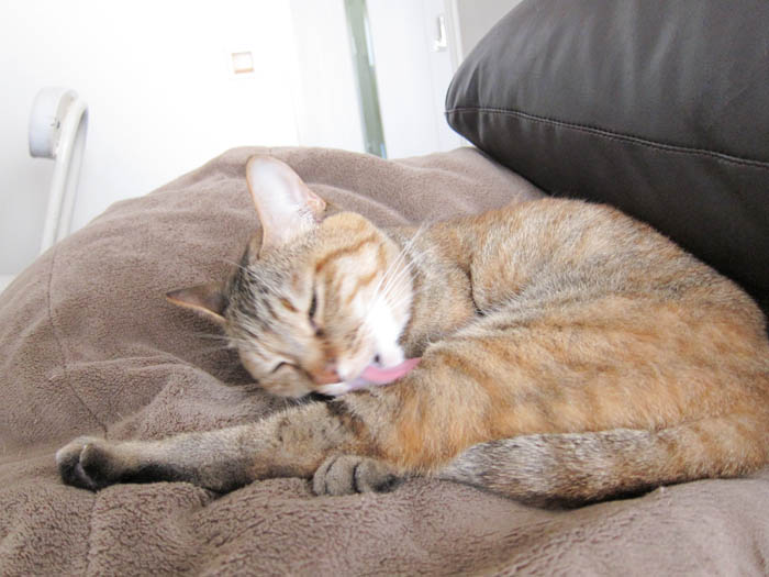 」体をペロリ、ペロリ、と毛づくろいを始めました。