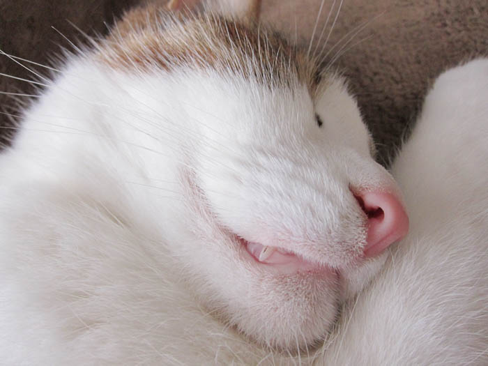 久しぶりの猫語録に【伊達巻寝】を追加です。ぽっけ♂の鼻先ペロリ写真なども。