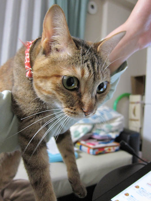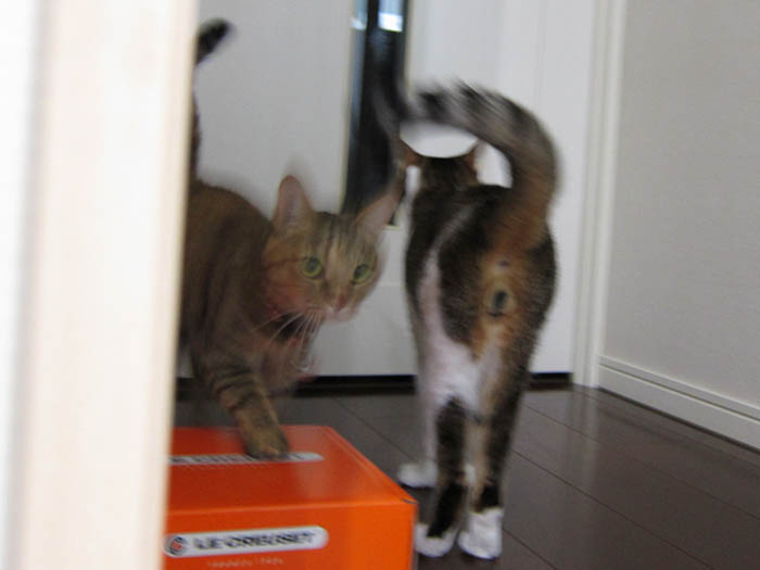 2010年 5/29(土) 651日目のぴっち♀とぽっけ♂ ~狙う猫~新規写真追加。2匹が狙う、とっても危険なごはん。ヨーグルトはともかく、カレー
