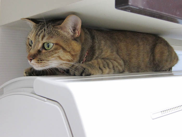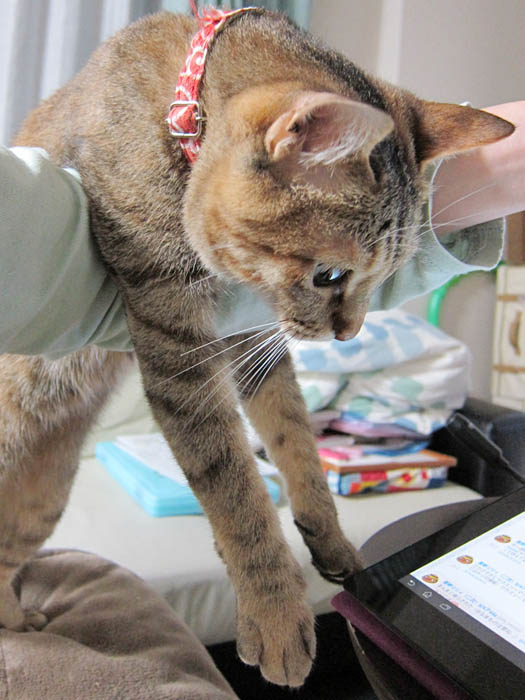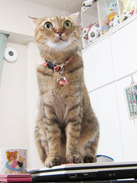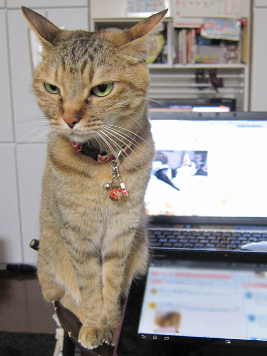 のノートPCの上なのです。嫌がるのを知って、乗っているのです……。