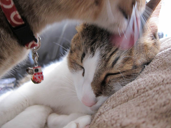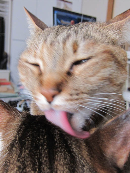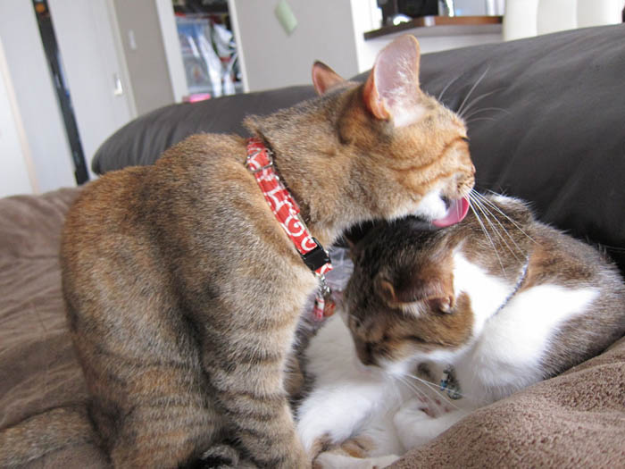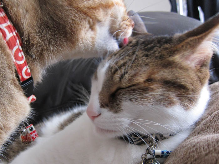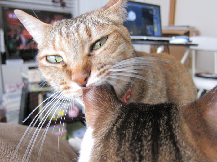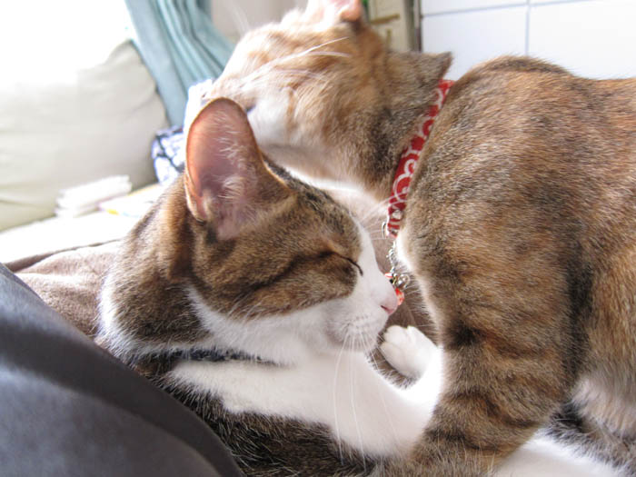 2009年 5/22(金) 279日目のぴっち♀とぽっけ♂ ~ぽっ毛のお手入れ~新規写真追加。2匹それぞれの毛づくろい。顔(舌)の大きさ=効率だと実感しました。