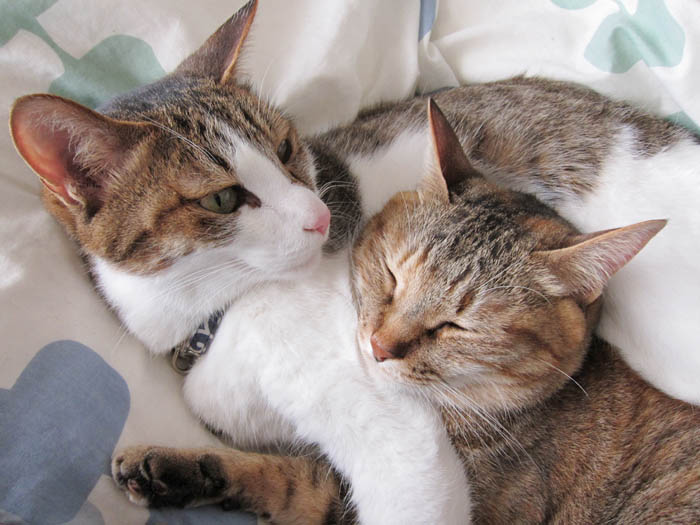 2011年 5/19(木) 1006日目のぴっち♀とぽっけ♂ ~朝から猫プロレス~ぴっち♀がのんびり中のぽっけ♂に襲い掛かり、朝から猫プロレスが開催されました。