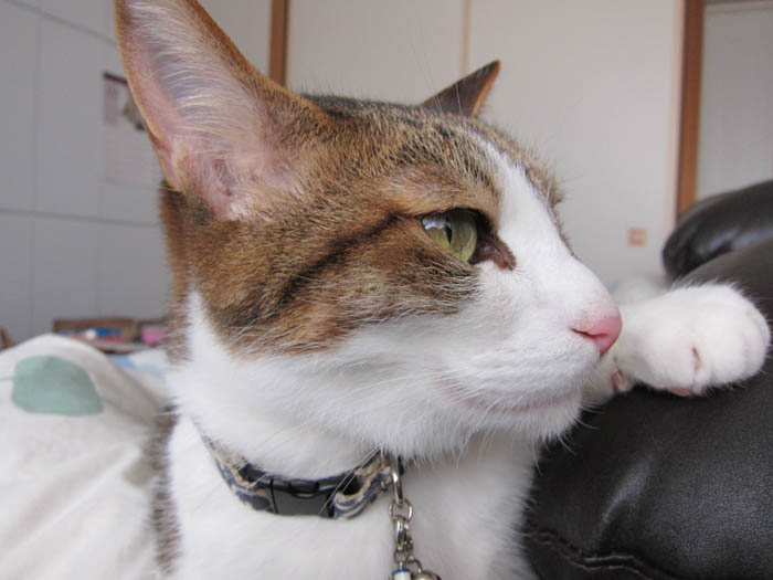 ぴっち♀はソファーの肘置きの上で