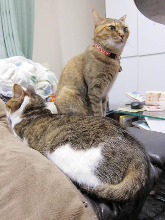 2010年 5/20(木) 642日目のぴっち♀とぽっけ♂ ~襖の隙間から~トーテムポールならぬ、ニャーテムポール。狭いです。