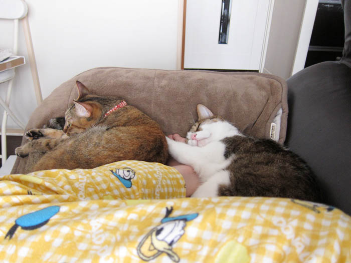 2匹を起さないよう体勢をキープしつつ、