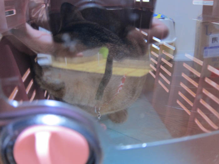 キャリーの中で爪をしっかり立てて