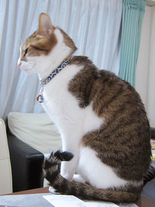 新規写真追加。朝食を狙う2匹のそれぞれの作戦。ぽっけ♂の大あくび。