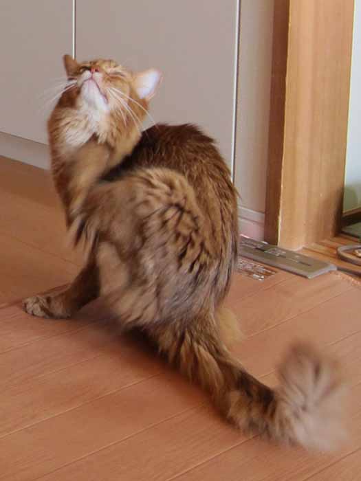 2009年 3/13(金) 209日目のぴっち♀とぽっけ♂ ~首長族風な猫~新規写真追加。猫タワーでの2匹。ぽっけ♂のしっぽ。ぴっち♀の首長族疑惑(笑)。