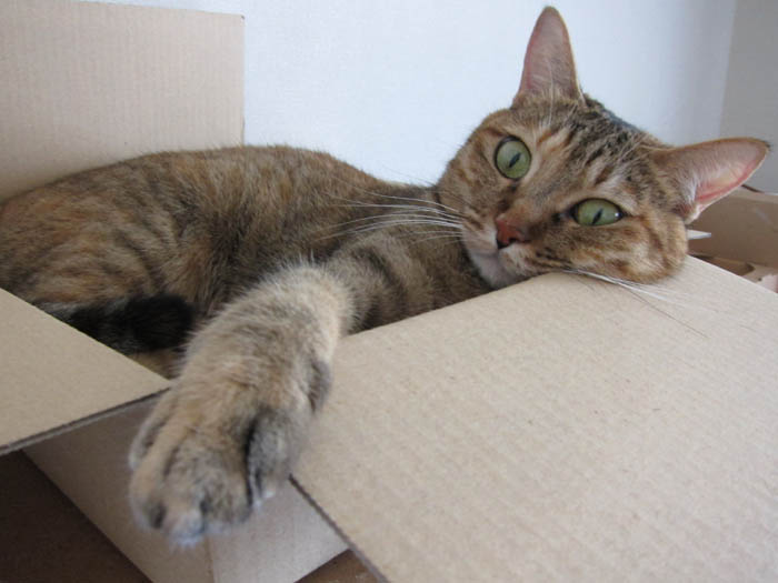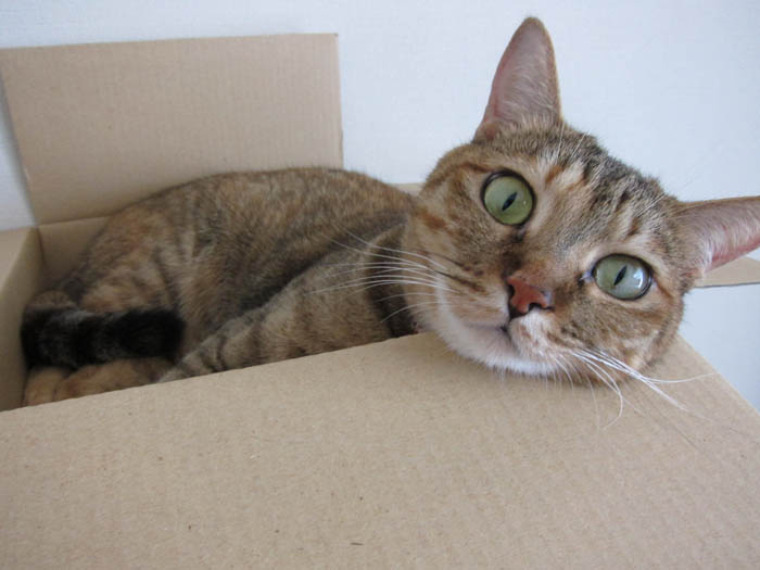 の横に合流していました。猫タワー【元・丸】に乗せている段ボール箱に