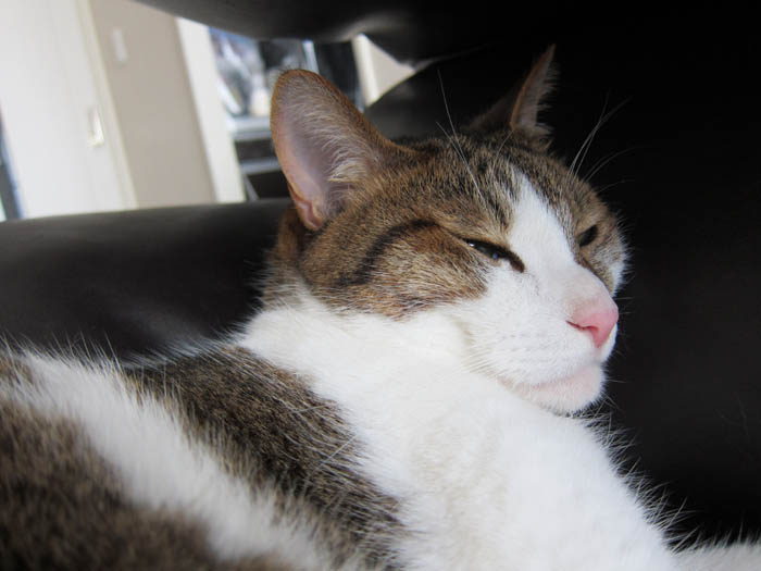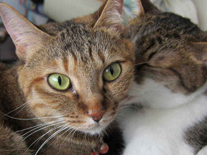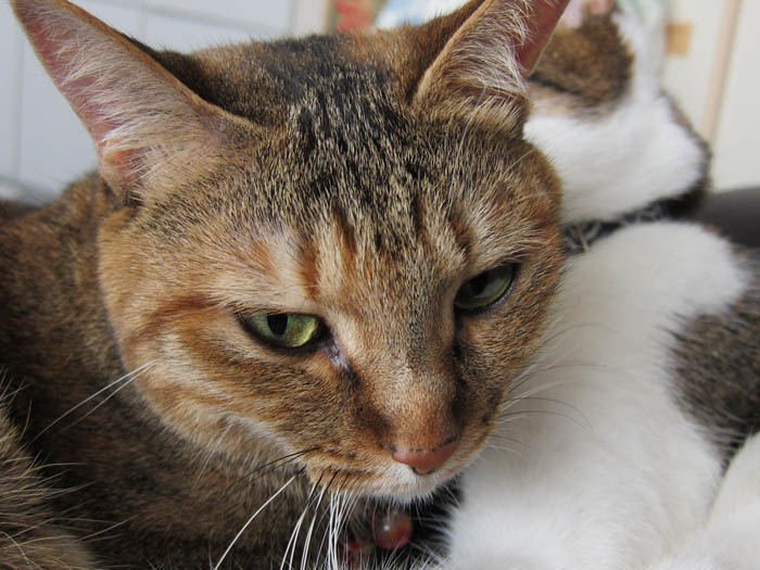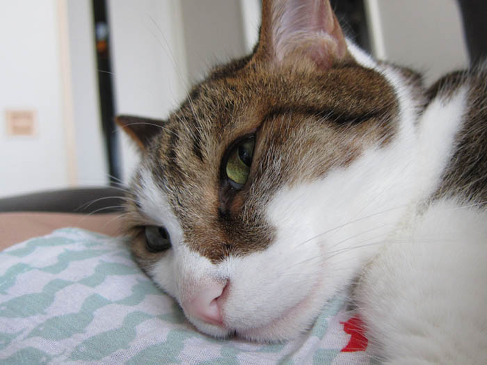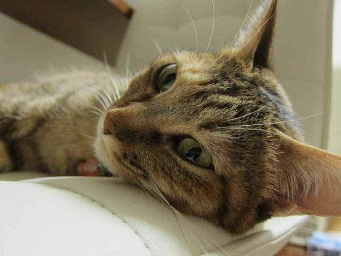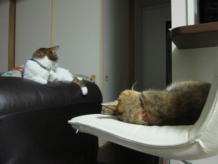 2011年 8/12(金) 1091日目のぴっち♀とぽっけ♂ ~マッタリと黒目~セルフ前足枕でマッタリしたり、黒目が大きかったりなぴっち♀。一方のぽっけ♂は……。