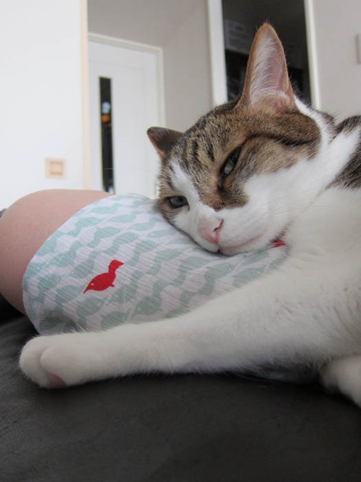 を枕にしています。この微妙な体勢で、疲れないのでしょうか……。