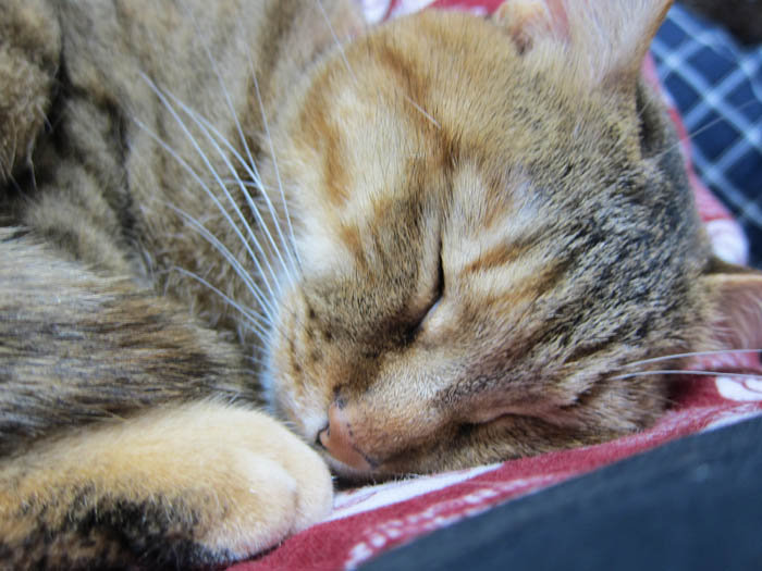 2010年 5/28(金) 650日目のぴっち♀とぽっけ♂ ~一緒に寝てみた日~久しぶりの探偵ぽっけ♂。1人&1匹ずつの猫と一緒に寝よう作戦、私はぽっけ♂担当でした。