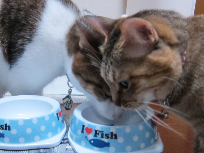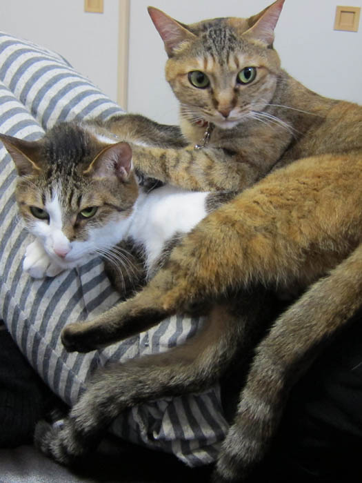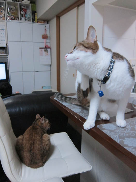 何故かカウンターの椅子に2匹が揃いました。