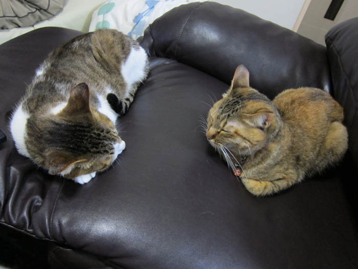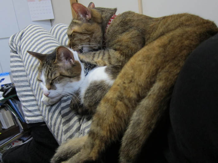 2010年 5/9(日) 631日目のぴっち♀とぽっけ♂ ~怖い、寝姿~新規写真追加。猫ベッドでの2匹。ちょっとホラーなぽっけ♂。ぴっち♀はちゃっかりさん。
