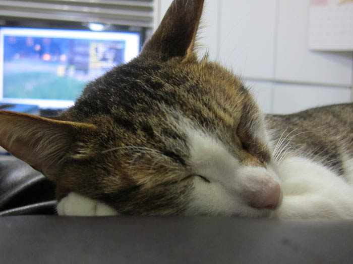 自分の席でお昼寝をするなずなちゃん。