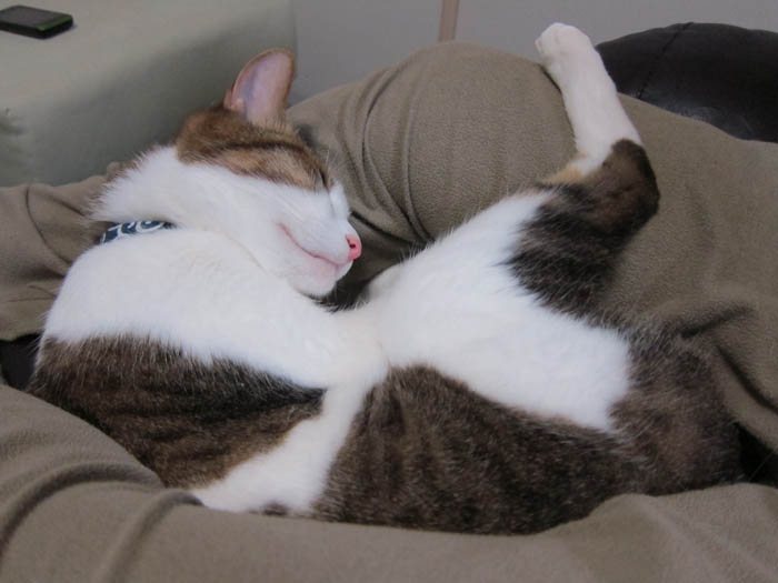 」①足の間でお昼寝したかったのに、