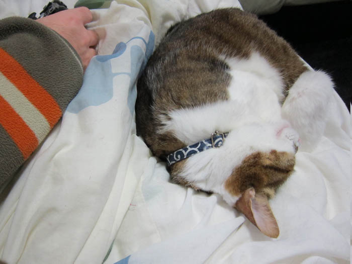 2011年 3/12(土) 938日目のぴっち♀とぽっけ♂ ~東北地方太平洋沖地震から2日目~特例で2匹と一緒に寝室で寝ました。余震の続く中でも2匹は意外とのんびり