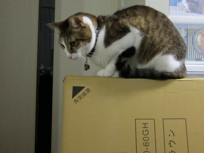 2009年 3/13(金) 209日目のぴっち♀とぽっけ♂ ~首長族風な猫~新規写真追加。猫タワーでの2匹。ぽっけ♂のしっぽ。ぴっち♀の首長族疑惑(笑)。