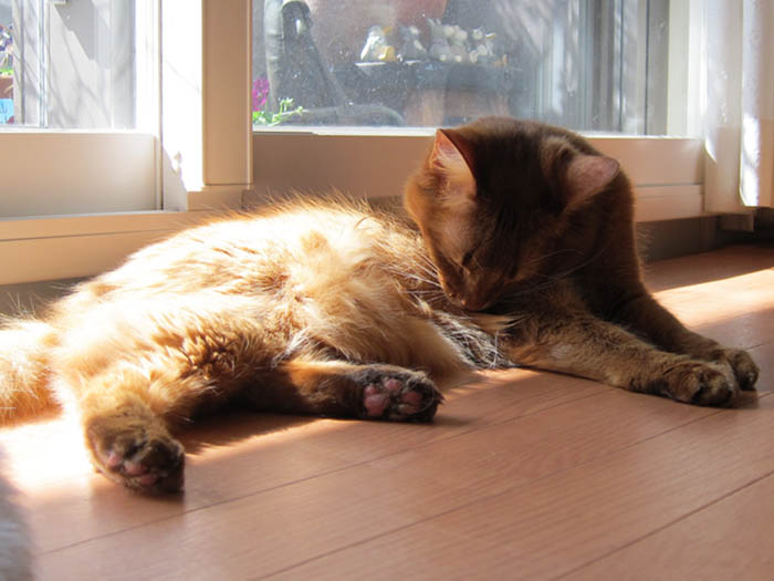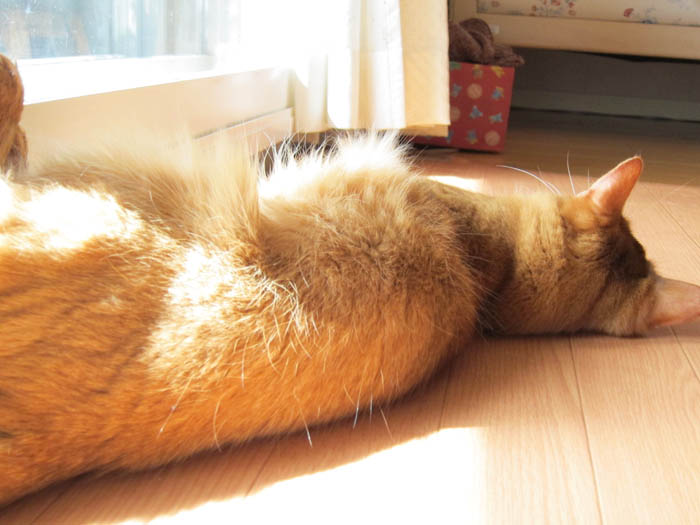 暖房の当たる暖かい時や羽毛布団に潜り込みますが、